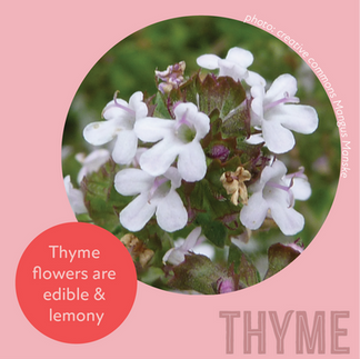 Scientific name: Thymus vulgaris Tastes: sharp, minty, earthy, floral, sweet, peppery Uses: pairs with meat, potatoes, cheese, and beans. Tea. Folk medicine.